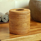 バリ島でひとつひとつ手作りされたラタンのトイレットペーパーボックス。バリ島のリゾートホテルやビラでは予備のトイレットペーパーをこのケースに入れて可愛くストックしているところが多いんです。フタの中央に