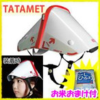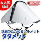 タタメット たためるヘルメット 「震災から頭を守る身近な道具」を目指して開発されたタタメットは、備蓄時・震災時ともに最大の力を発揮するかつてない道具!既存のヘルメットとは大きく仕様が異なりますが、ご安心ください。タタメットは、防災用ヘルメットに不可欠な厚生労働省の労働安全衛生法保護帽規格「飛来・落下物用」の型式検定に合格しています。たためる最大のメリットは、かさばらず邪魔にならないということですが、1立方メートルに約400個収納可能なタタメットは、大勢の人が集まる公共の施設や避難所における大量備蓄にもピッタリです。 価格:4200円(送料別) ####INAME