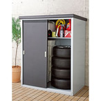 タイヤも収納できる引き戸収納庫 ガーデン用品やカー用品などで、雑然としがちなエクステリア周りをすっきり収納。頑丈なスチール製で、オフシーズンのタイヤから工具ボックス、オイルのストックなど、かさばるカー用品もたっぷり収納できます。奥行内寸約67cmで、タイヤもしっかり収納できます。(※お手持ちのタイヤのサイズを事前にお調べください)扉は引き戸式ですから、扉の開け閉めスペースがいりません。扉には鍵付きで防犯上も安心。 価格:26800円(送料別) ####INAME